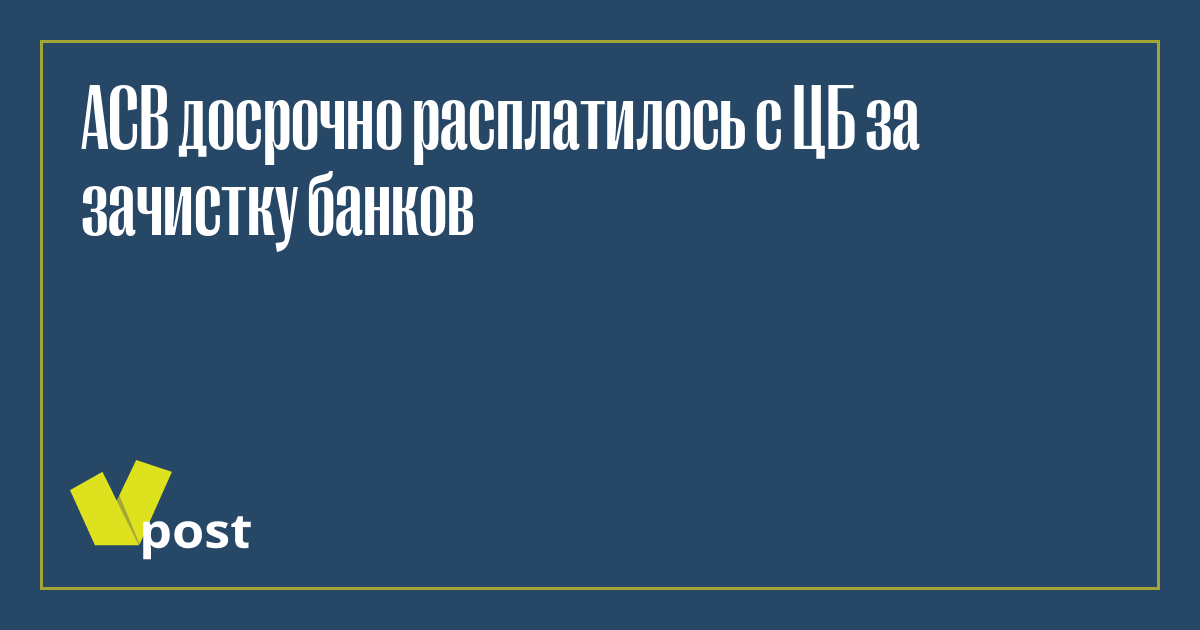 Агентство по страхованию вкладов (АСВ) досрочно расплатилось с Центробанком по кредиту, полученному в 2015 году на выплаты вкладчикам во время зачистки банковской системы.