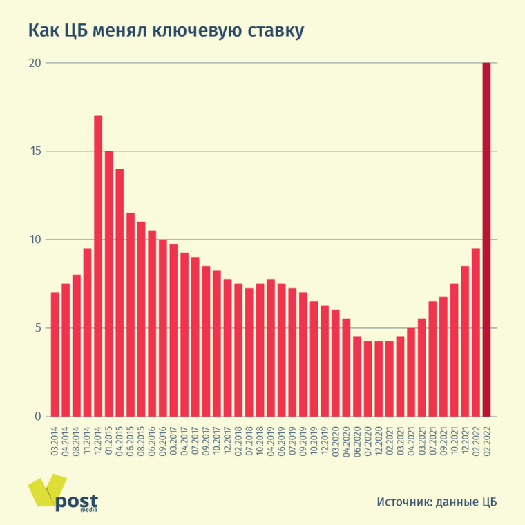 Почему именно 20%? Можно допустить, что это такой психологически сильный шаг, расчет на то, что такое повышение точно подействует и успокоит рынок. Сегодня торги закрыты, но когда они рано или поздно откроются, уровень доходностей автоматически переставится на 20% у коротких ОФЗ, у корпоративных выпусков — и того выше, что в теории позволит сдержать продажи. Все-таки 20% в обычных обстоятельствах — это очень привлекательная доходность. Но достаточно ли этого сейчас, будет зависеть от дальнейшего развития ситуации.