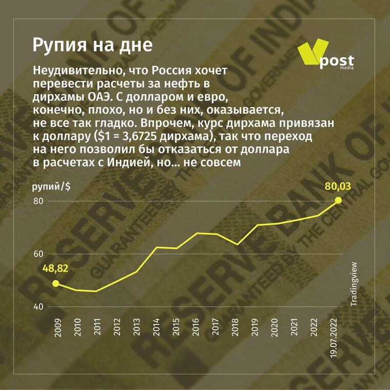 «Валюта, на которую в первую очередь сейчас все смотрят, — это, конечно, юань, потому что там и рынок большой, и курс стабильный, во всяком случае, по отношению к курсу доллара. Но юань — не единственная валюта, которая рассматривается. Рассматриваются и дирхам, и ряд других валют более мелких рынков», — сказал Моисеев.