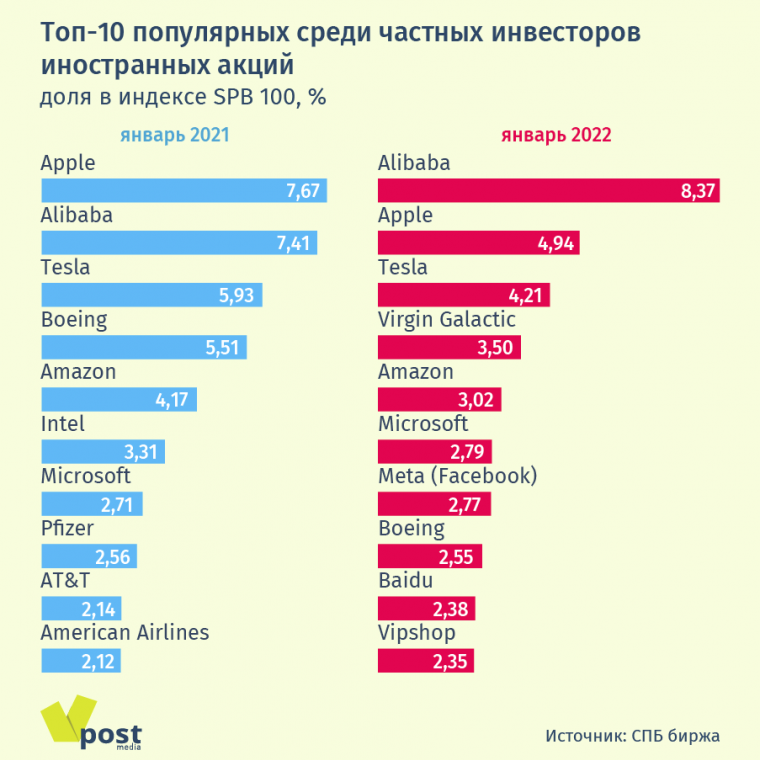 VPost изучил, как менялись предпочтения частных инвесторов в отношении иностранных акций в течение прошлого года и попросил профессионалов оценить биржевую моду. В этом нам помогла СПБ биржа, главная в России площадка по торговле иностранным бумагами, и ее индекс SPB100, который отслеживает динамику 100 самых популярных у наших инвесторов бумаг. Недавно как раз прошла ребалансировка индекса, которая может многое сказать о действиях инвесторов.