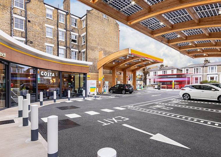 В январе Shell открыла в лондонском районе Фулхэм пилотный центр заправки для электромобилей. На месте бензозаправки появились под деревянным навесом точки скоростной зарядки, зона отдыха с бесплатным Wi-Fi, кафе и супермаркет Waitrose.