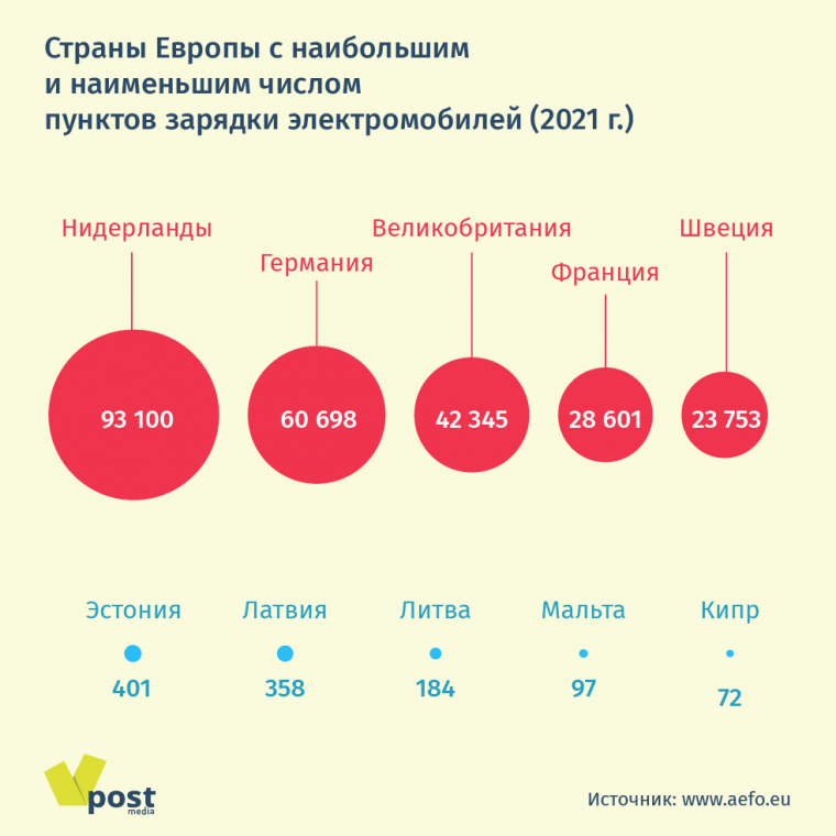 Задача создания зарядной инфраструктуры многопланова. Например, надо преодолеть гигантский разрыв между региональными лидерами и отстающими. Так, в Европе больше всего электрозаправок в Нидерландах (47,5 на 100 км дорог), а в Польше, площадь которой больше в восемь раз, — 1 зарядка на 250 км.