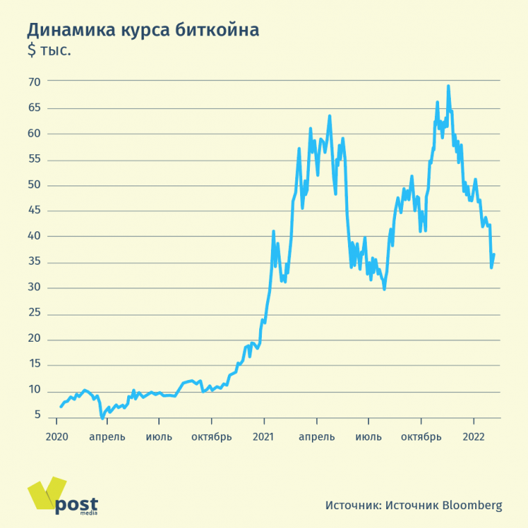 Утверждения о том, что он поможет захеджироваться от инфляции, не прошли первую же проверку на практике. Скорее, наоборот: в то время как индексы потребительских цен по всему миру карабкались вверх, курс биткойна катился вниз. Потому что не они определяли динамику курса, а восприятие инвесторами риска и перспектив ужесточения денежной политики.