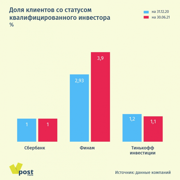 У 97–99% инвесторов нет статуса квалифицированного инвестора. Это значит, что некоторые сложные инструменты доступны им только после прохождения теста (если, конечно, у них не было ранее опыта торговли ими) или недоступны вообще. При этом на квалифицированных инвесторов приходится 70% активов на брокерских счетах, отмечал ЦБ.