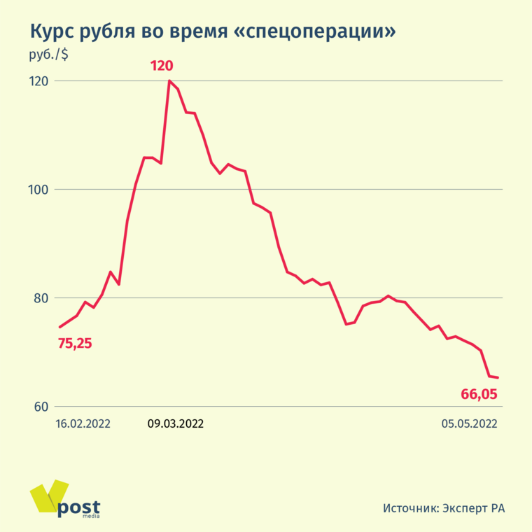 Экспорт сократился не так сильно, как можно было ожидать, а 80% экспортной выручки требуется продавать, хотя есть исключения для небольших компаний. Импорт же просел почти в два раза. Так что рубль имеет тенденцию к дальнейшему укреплению, если ничего не поменяется. Наверно, ЦБ будет делать какие-то послабления по контролю за капиталом (вероятно, сокращение требований по обязательной продаже экспортной выручки).