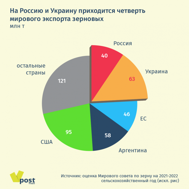 По мнению Карлоса Меры, начальника отдела анализа рынков сельскохозяйственного сырья Rabobank, в худшем варианте — при полномасштабном конфликте — мировой рынок может лишиться значительной части поставок из этих двух стран, а цены на пшеницу могут «легко вырасти вдвое».