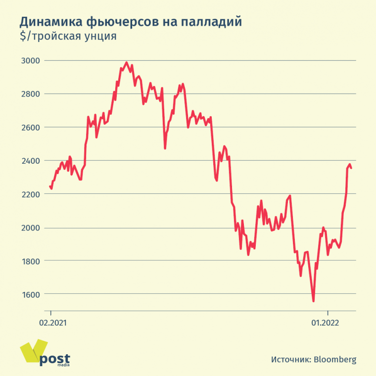 Однако рынок палладия, где доминирует Россия (точнее, «Норникель»), уже отреагировал на возможность сбоев в поставках. Хотя до исторического максимума на уровне $3000 за тройскую унцию палладию еще далековато, в декабре более чем семимесячное падение его цены прекратилось около отметки $1600. А во второй половине января с обострением ситуации она взлетела на 30%.