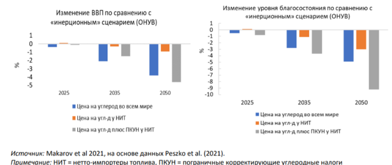 - кооперативный сценарий (углеродная цена вводится во всем мире — и импортерами, и поставщиками ископаемого топлива, включая Россию);