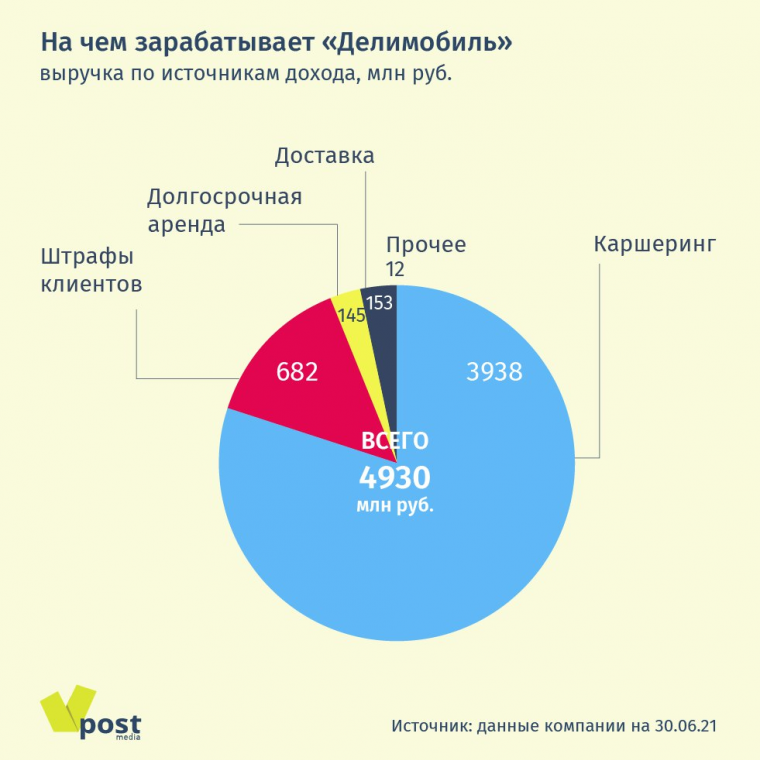 Еще одно направление — сервис доставки для бизнеса. Компания запустила его весной 2020 г., когда каршеринг в Москве не работал из-за локдауна, и теперь рассматривает как дополнительный источник дохода и способ оптимизации автопарка, когда автомобили не в аренде, говорится в проспекте эмиссии. В 2020 г. сервис доставки принес «Делимобилю» 148 млн руб. выручки, в январе–июне 2021 г. — 153 млн.