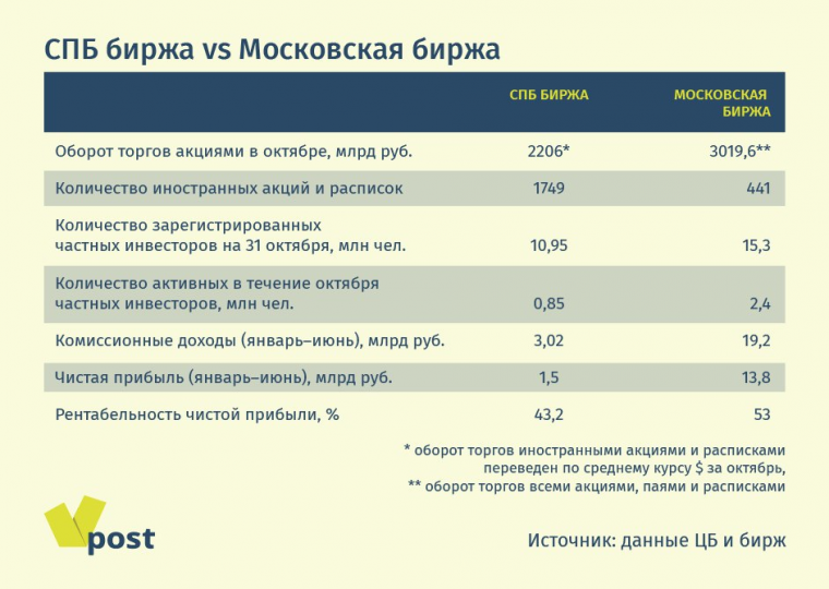 К концу октября на СПБ бирже были зарегистрированы почти 11 млн человек, на ее основном конкуренте, Московской бирже, — 15,3 млн.