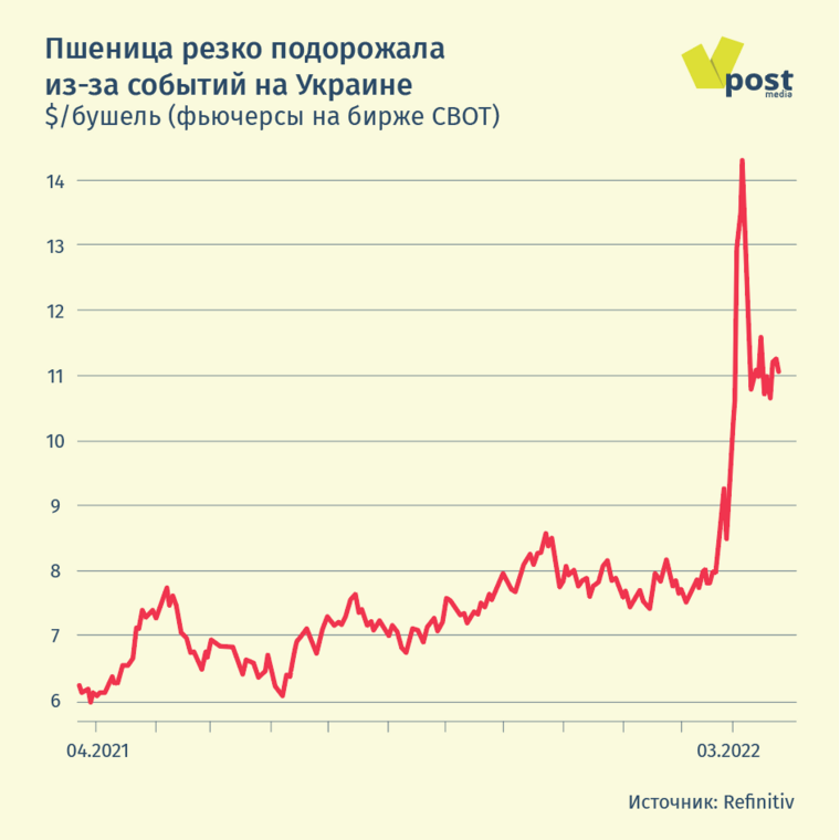 А с 15 марта правительство России ввело запрет на вывоз из страны зерновых (пшеницы, ржи, ячменя и кукурузы) до 30 июня.