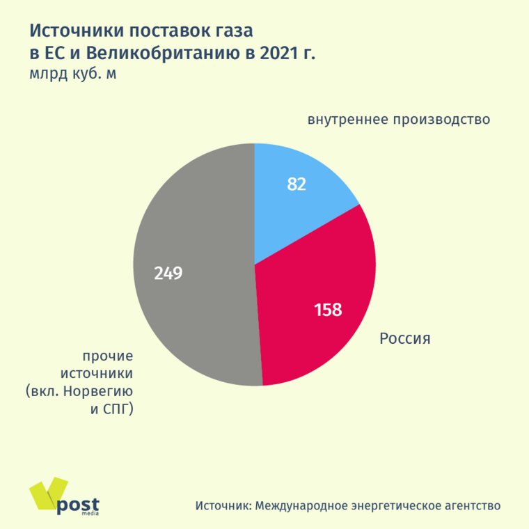 В 2021 г. ЕС и Великобритания закупили почти 160 млрд куб. м газа из России. Еврокомиссия надеется, что в 2022 г. эта цифра сократится на 102 млрд.